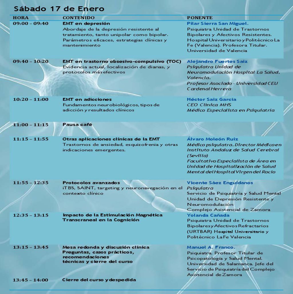 El pasado 16 y 17/ enero se llevó a cabo en Zamora el Curso de Introducción y Aplicación Clínica de la Estimulación Magnética Transcraneal (EMT), una formación intensiva dirigida a profesionales de la salud mental y la neuromodulación interesada en esta técnica no invasiva aplicada en psiquiatría y neurología.